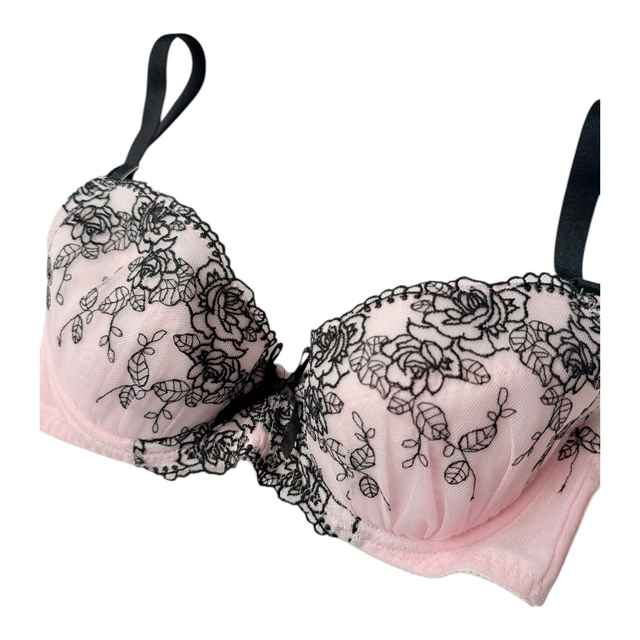 Black + pink floral embroidered Japanese Bra UK 30C