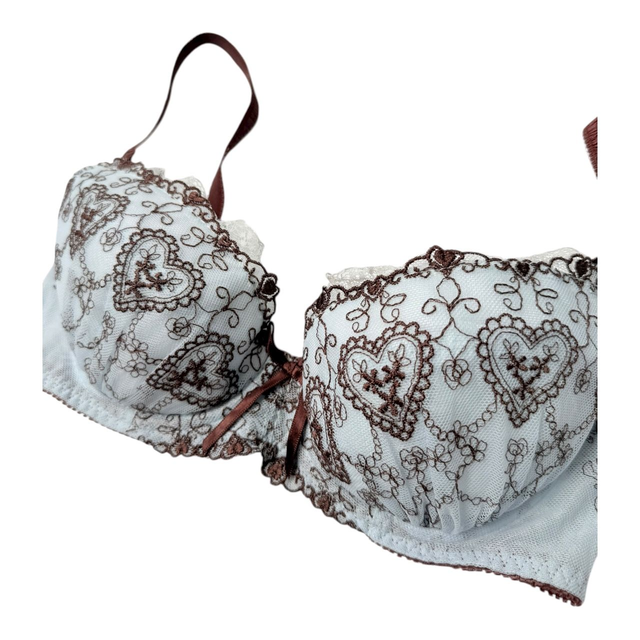 Blue + brown regal embroidered Japanese Bra UK 30C