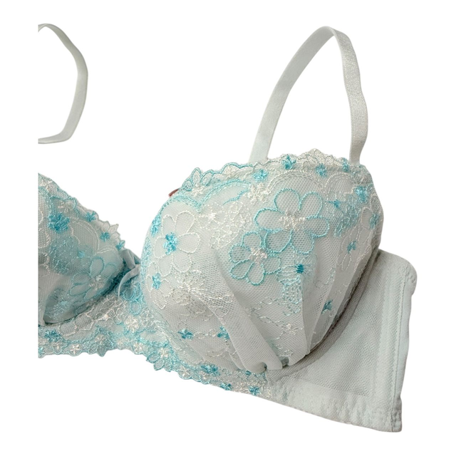 Blue floral embroidered Japanese Bra UK 32B