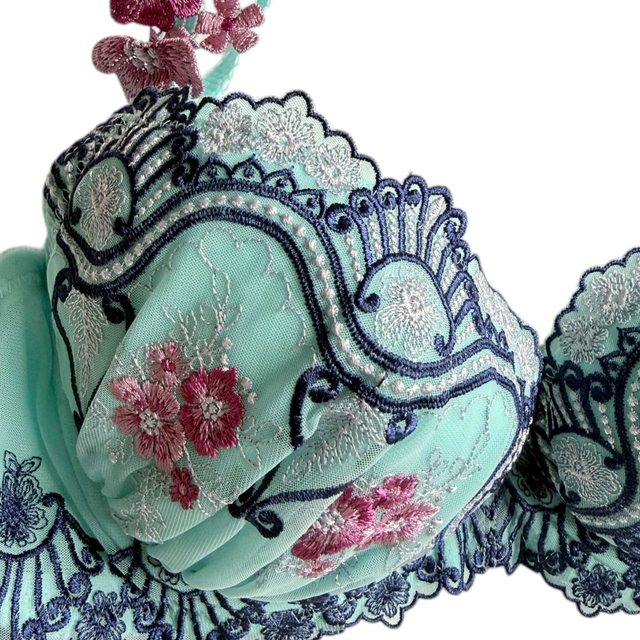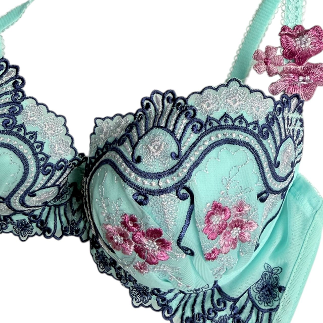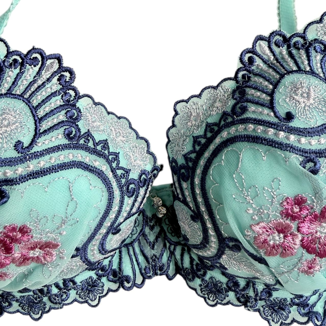 Blue intricately embroidered Japanese Bra UK 32B