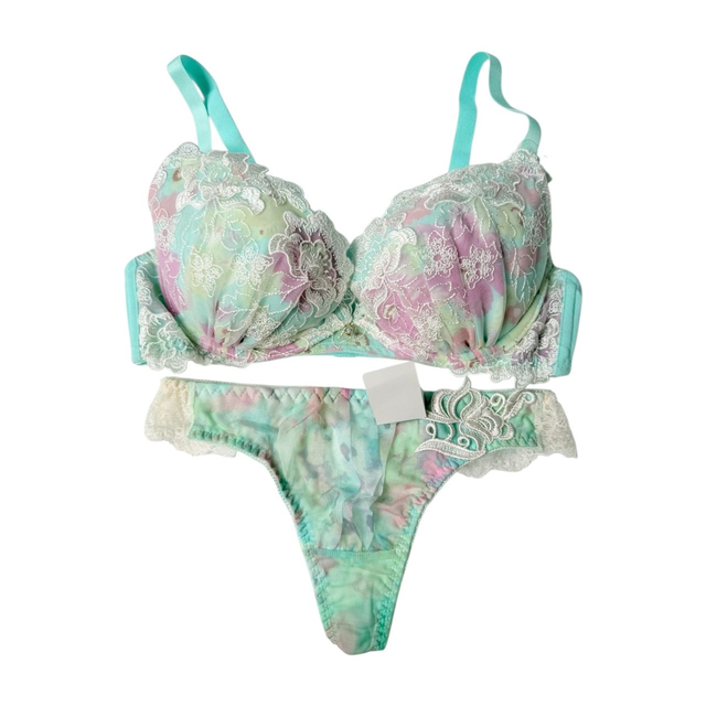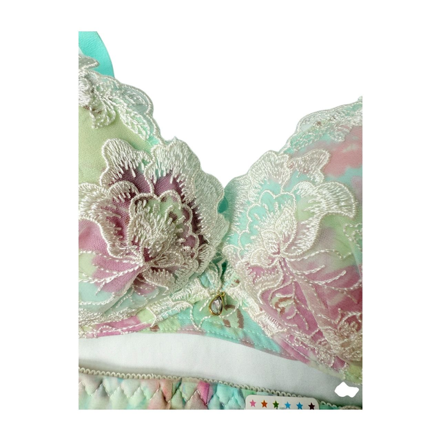Blue multicolour embroidered Japanese Bra and underwear set UK 32C