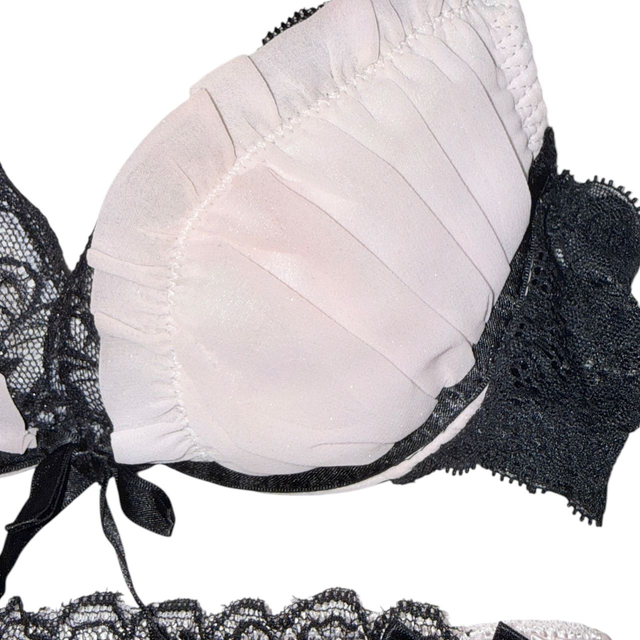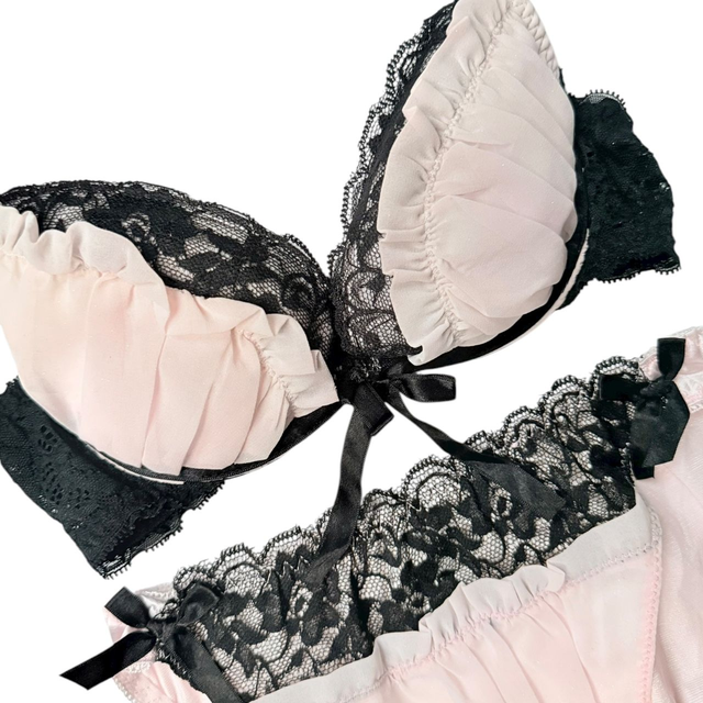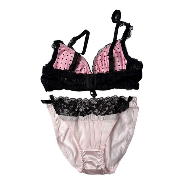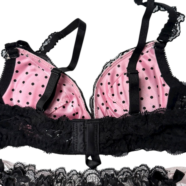 BNWT Japanese brand coquette pink tulle polka dot bra and underwear set