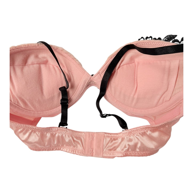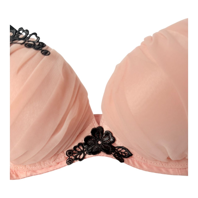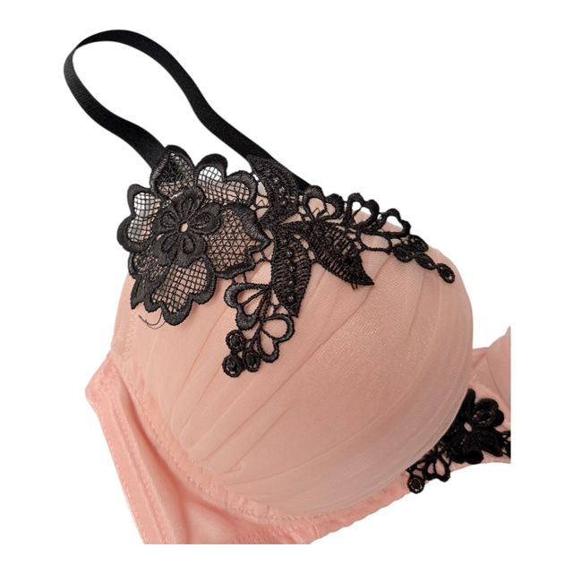 Coral pink + black floral embroidered Japanese Bra UK 32A