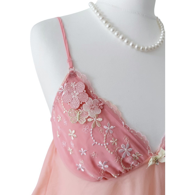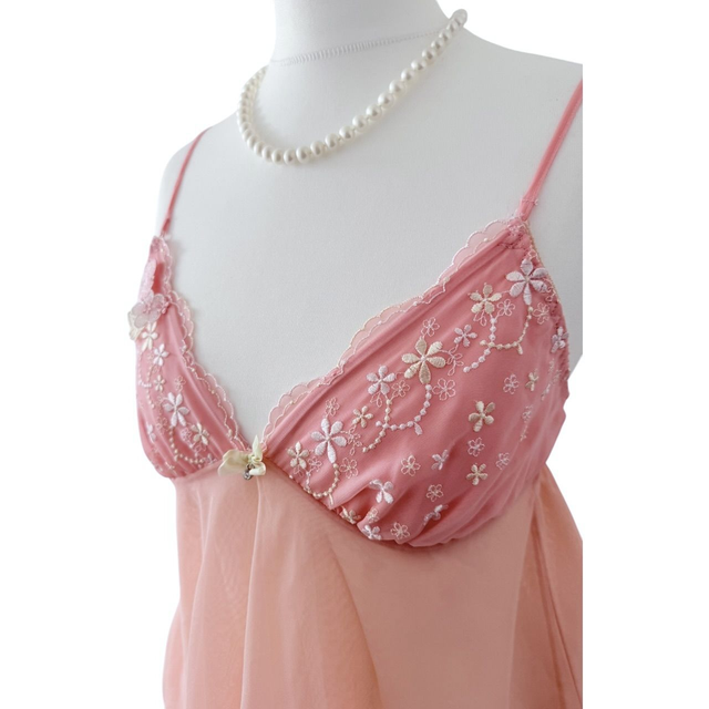 Coral pink floral appliqué embroidered cups cami