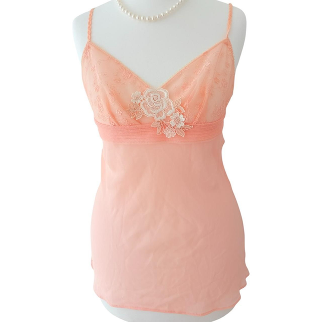 Japanese brand coquette peachy pink floral embroidered cups cami