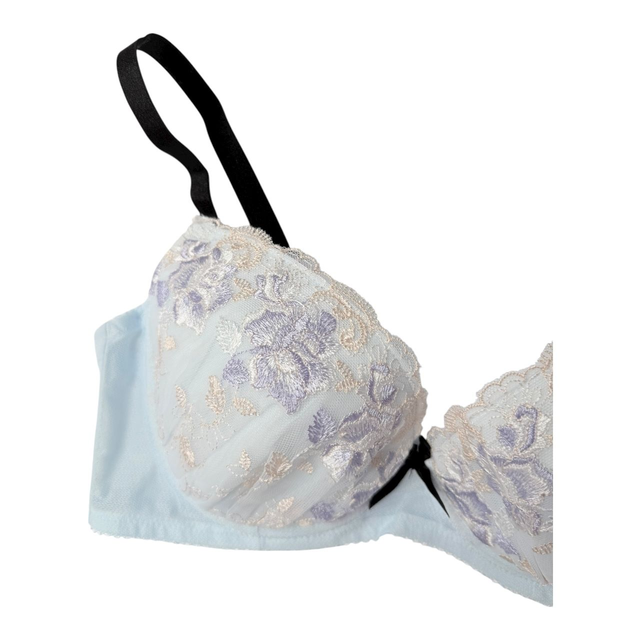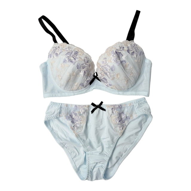Light blue + purple floral Japanese Bra + Underwear Set UK 34DD, 34D