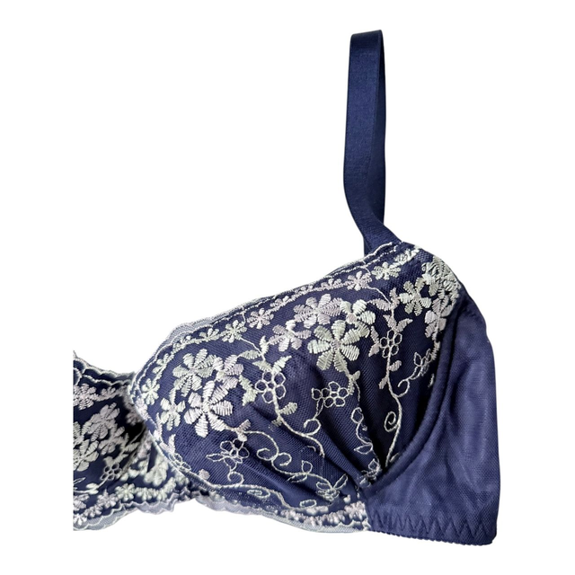Navy blue Floral Embroidered Japanese Bra UK 34C