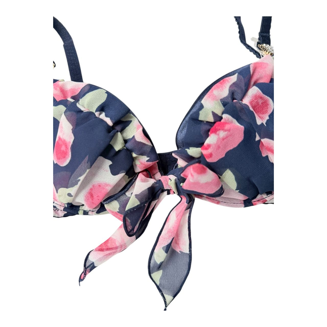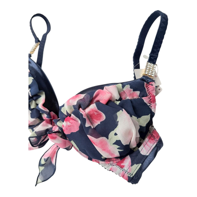 Navy blue + pink floral chiffon Japanese Bra UK 30A