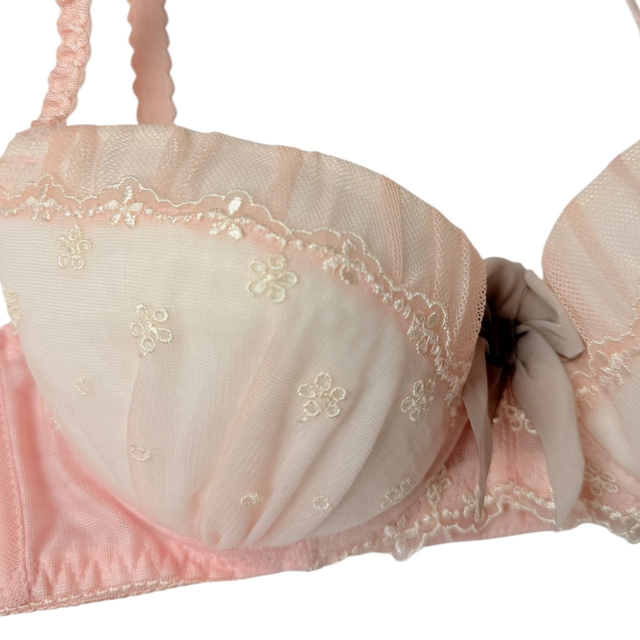 Peachy pink tulle embroidered Japanese Bra UK 32B