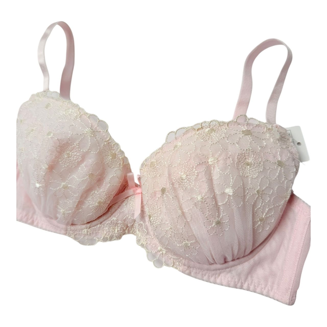 Pink and butter yellow daisies embroidered Japanese Bra UK 32B
