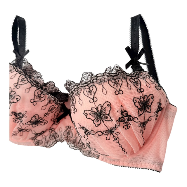 Pink +black butterfly embroidered Japanese Bra UK 30C