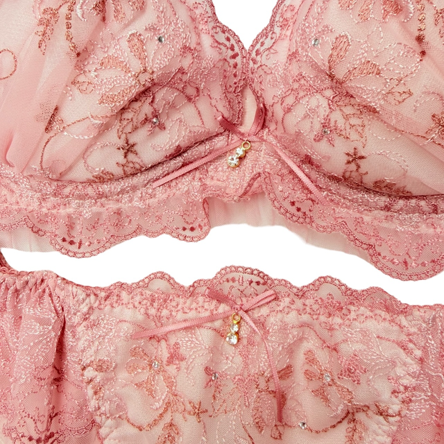 Pink bow embroidered Japanese Bra + Underwear Set UK 32C