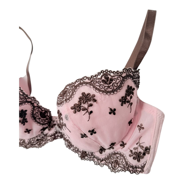 Pink + brown embroidered Japanese Bra UK 32B, 32C