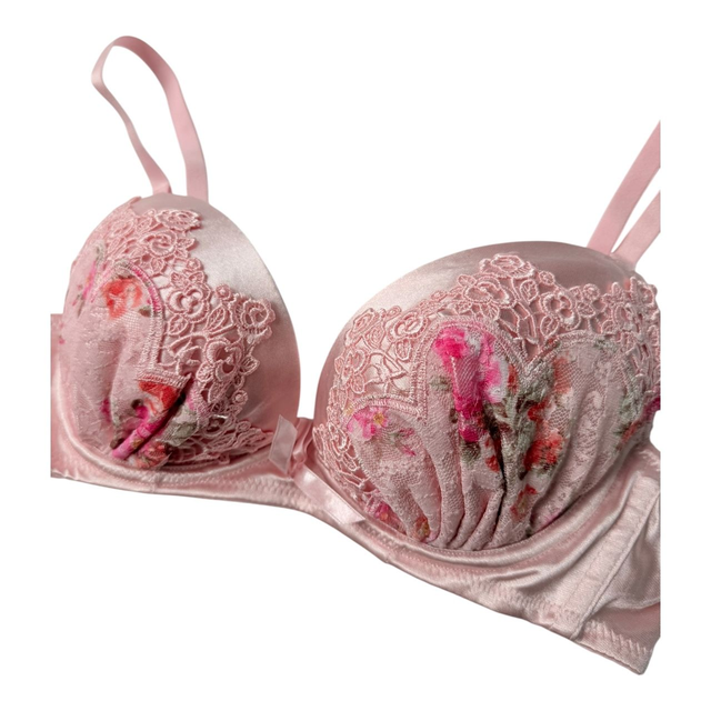 Pink floral + satin Japanese Bra UK 30A