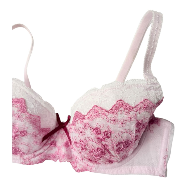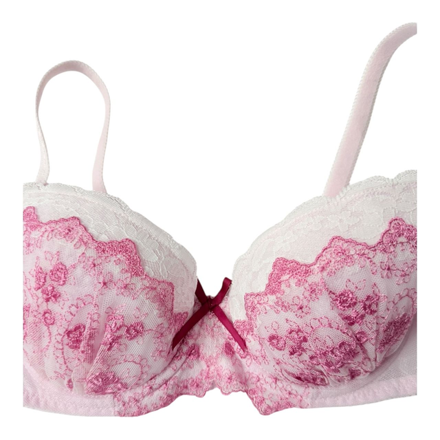 Pink + lace embroidered Japanese Bra UK 32B