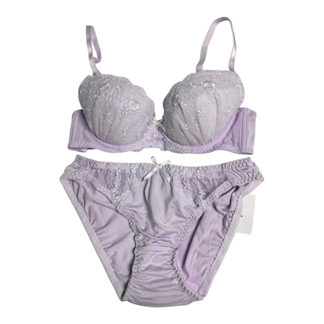 Purple Floral Embroidered Japanese Bra + Underwear Set UK 34DD, 34D, 36C, 34A