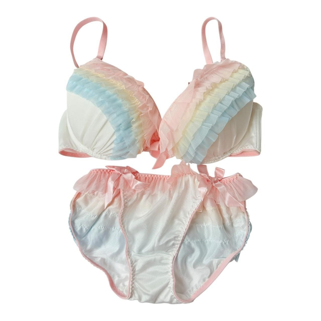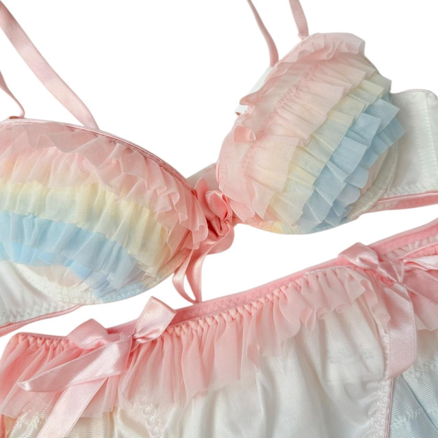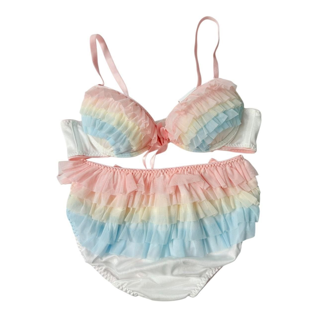 Rainbow multicolour frill Japanese Bra and Underwear set UK 32D